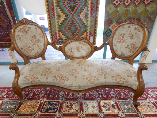 Antique Victorian Style Carved Wooden Velvet 2 Seater Couch Dimensions: 110cm L x 50cm x 92cm (H) It needs a little TLC in the upholstery ...