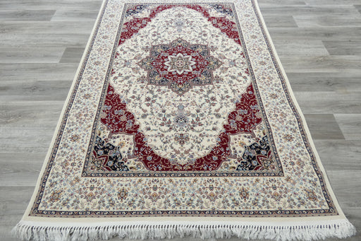 Anahita - Imperial Medallion Made in: Egypt Colour: Rich blend of traditional tones including creams, red, navy and soft gold accents Pile Heig...