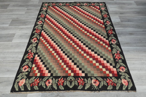 Introducing our stunning Moldavian Kilim, featuring a striking black background adorned with colorful leaves and delicate small flowers. The in...