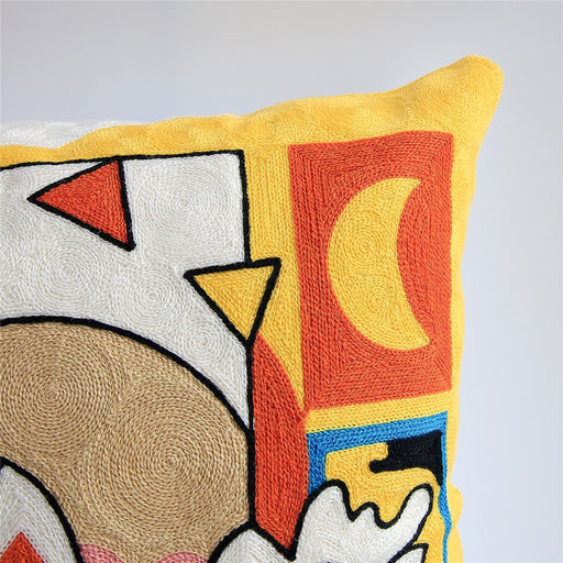 Hand embroidered cushion cover inspired by Spanish artist Pablo Picasso. Vibrant colors and motif inspirations give this range a point of differen...