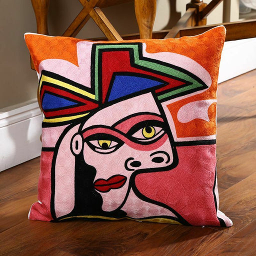 Add a Bold Artistic Touch to Your Home Transform your space with this Picasso-inspired embroidered cushion cover, a true statement piece for lovers...