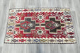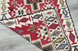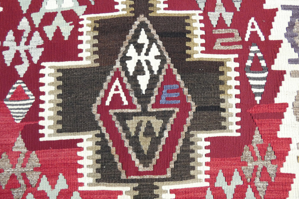 The design of this rug is characterized by a harmonious arrangement of motifs, creating a striking and balanced visual impact. Crafted with meticulous attention to detail, this Turkish Anatolian Kilim rug serves as a versatile and elegant addition to any space. Whether placed in an entrance, living room, office, or prayer area, it brings a touch of sophistication and cultural heritage to your environment.
