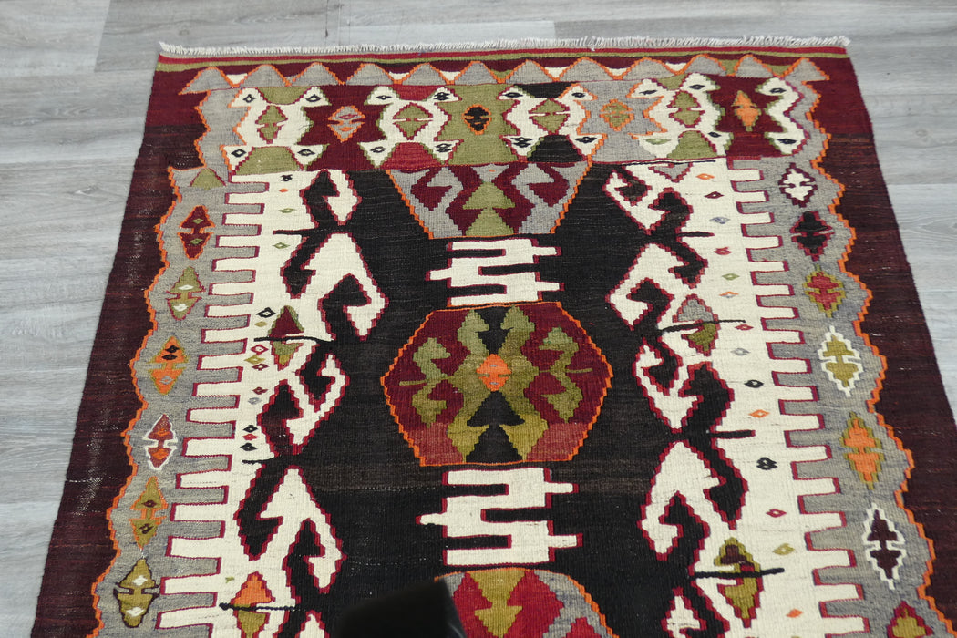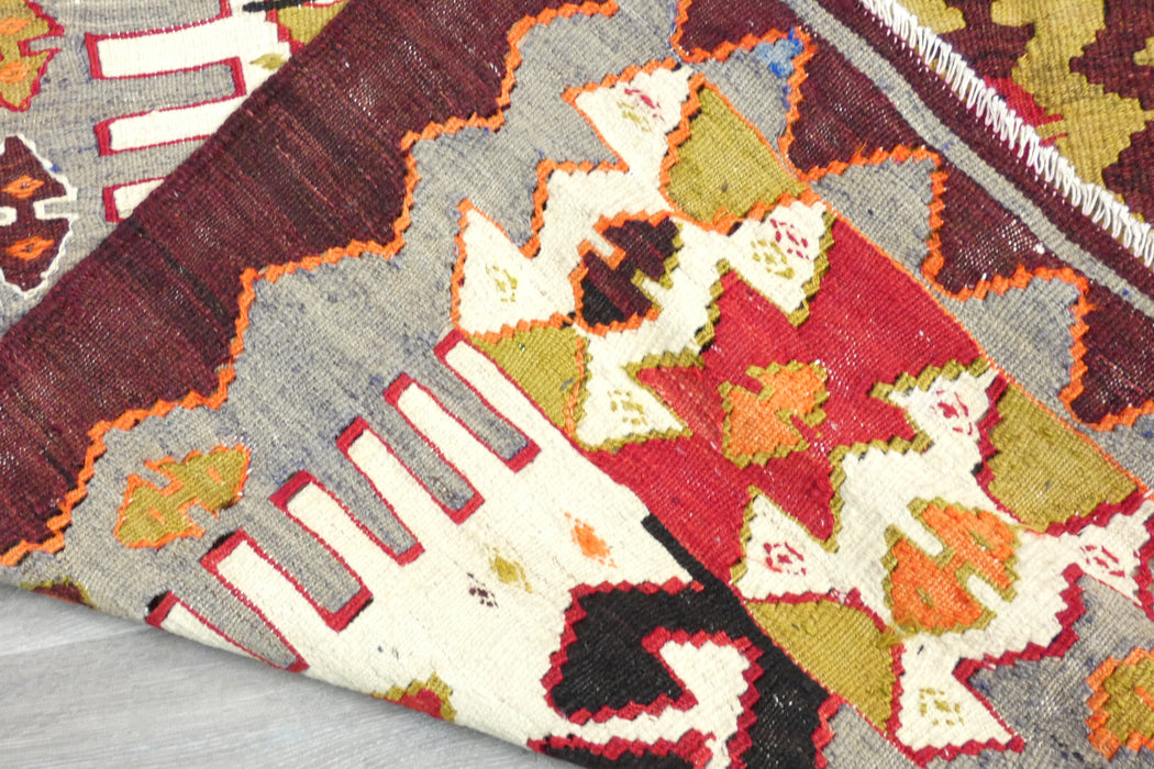 Introducing our exquisite Handmade Fine Turkish Anatolian Kilim rug, a beautiful blend of traditional craftsmanship and vibrant design. This stunning rug features a rich array of colors and intricate patterns that reflect the artistry of Turkish weaving.