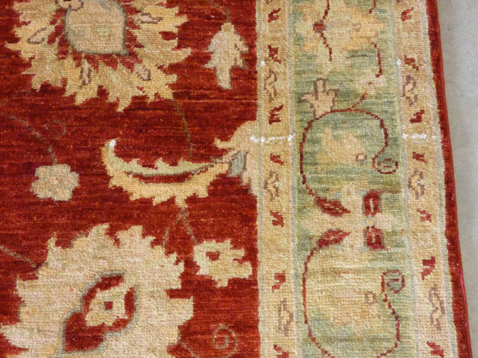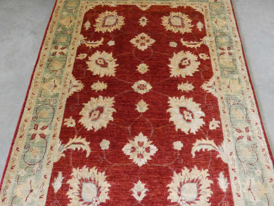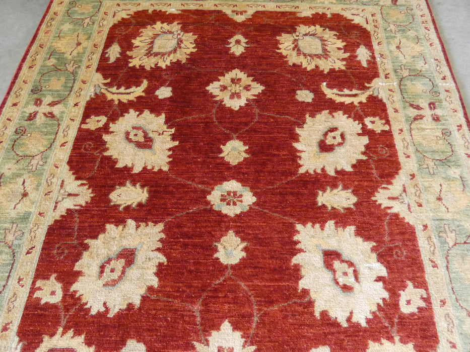This rug is a beautiful Genuine Floral Vegetable Dye Choubi. It is a workshop carpet hand-knotted in a Master Weaving House in the Northern Mountainous Regions of Afghanistan. The pile is hand spun wool and the dyes used are natural.