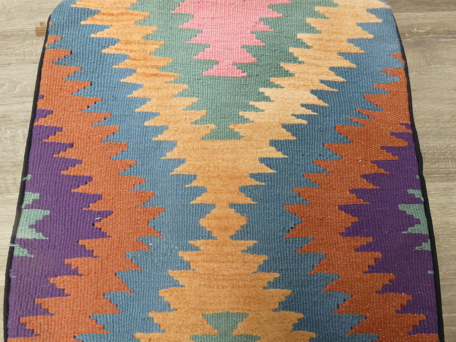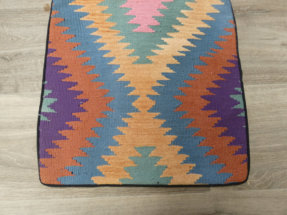 A beautiful tribal Afghan pillow made from an old Afghan rug. This is a handwoven pillow cover made with the same technique as a kilim but it is used as a decorative pillow cover. It is made of Wool, Polyester & Cotton.