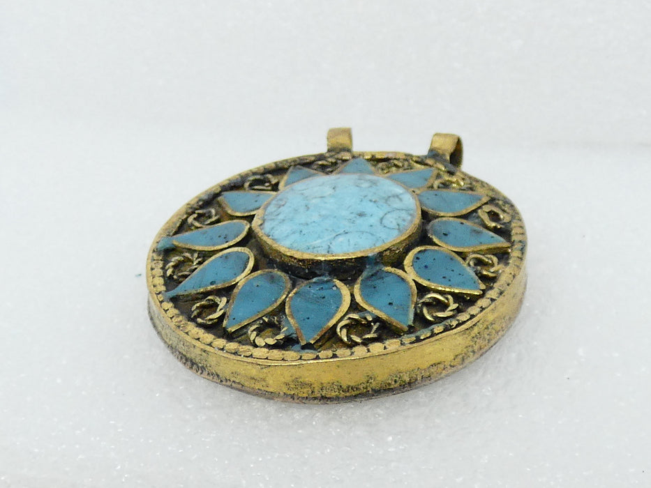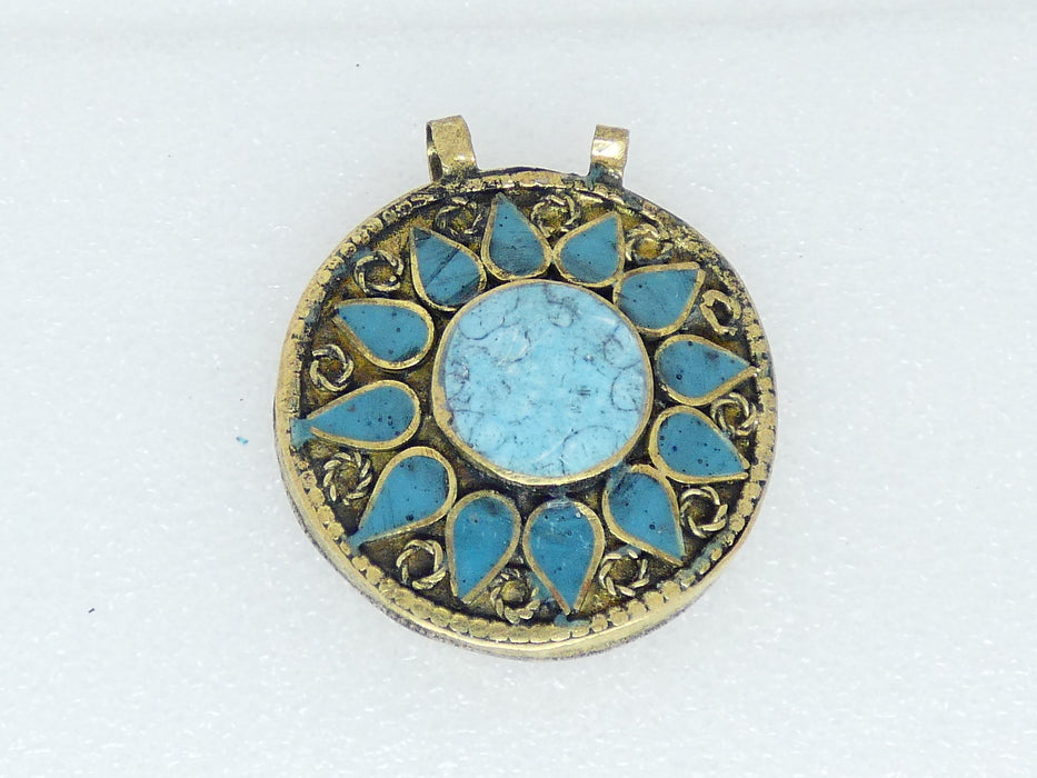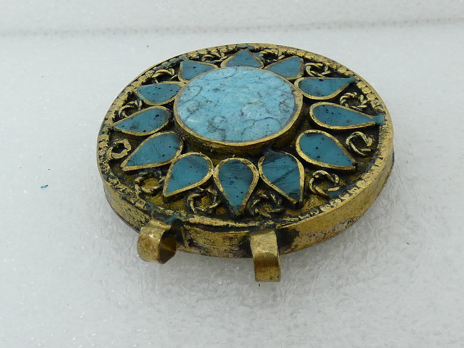 - Gemstones: Turquoise Blue in the middle on gold alloy metal