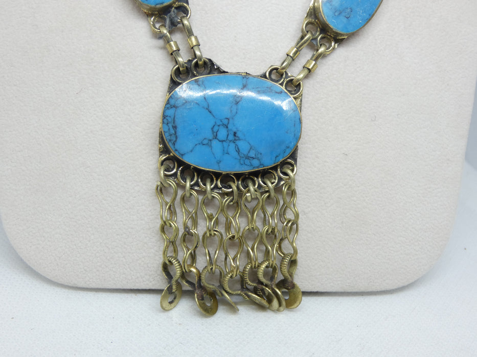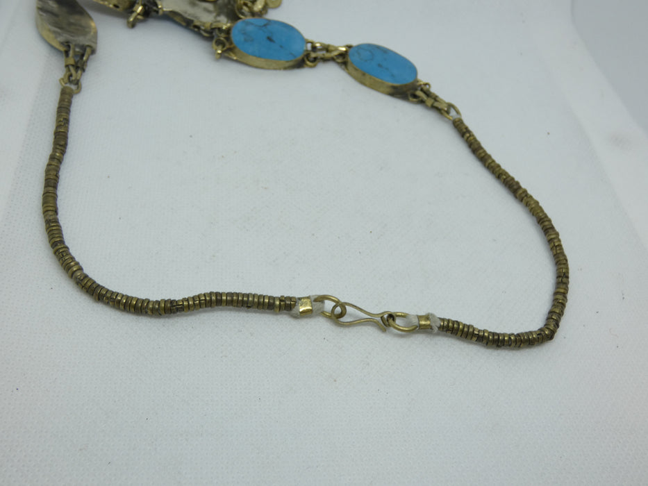 -Gemstones: Turquoise blue engraved on ornate burnished old gold tone alloy metal