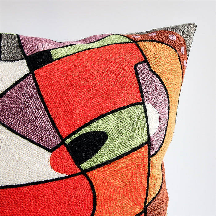 Hand embroidered cushion cover inspired by Spanish artist Pablo Picasso. Vibrant colors and motif inspirations give this range a point of difference. Quality Art Silk and Wool fabrics are used.