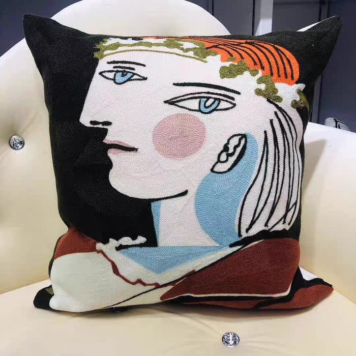 Hand Embroidered Picasso Style "Modern Muse" Cushion Cover