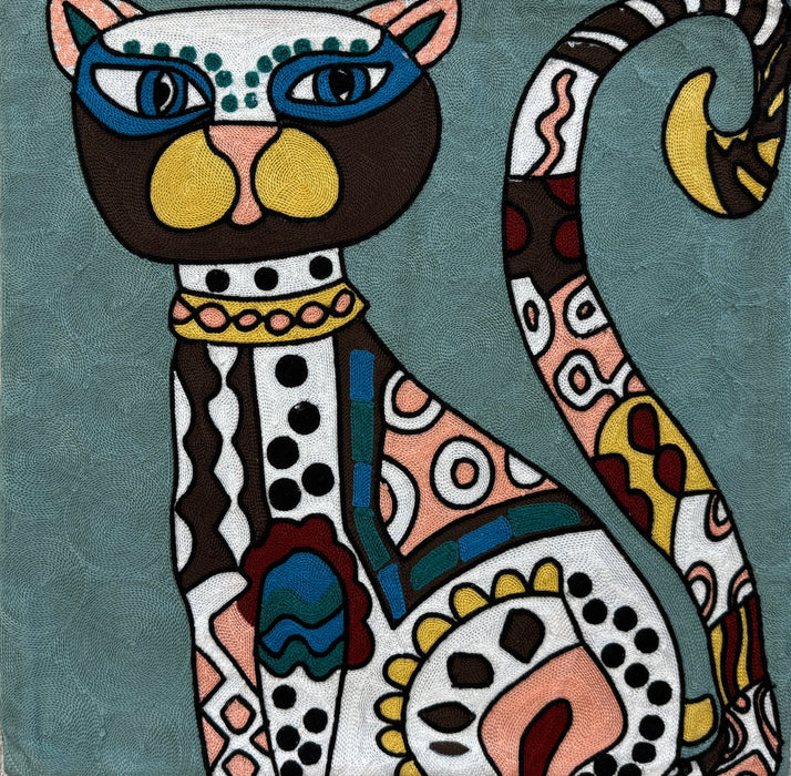 Hand Embroidered Picasso Style "Mystic Meow" Cushion Cover