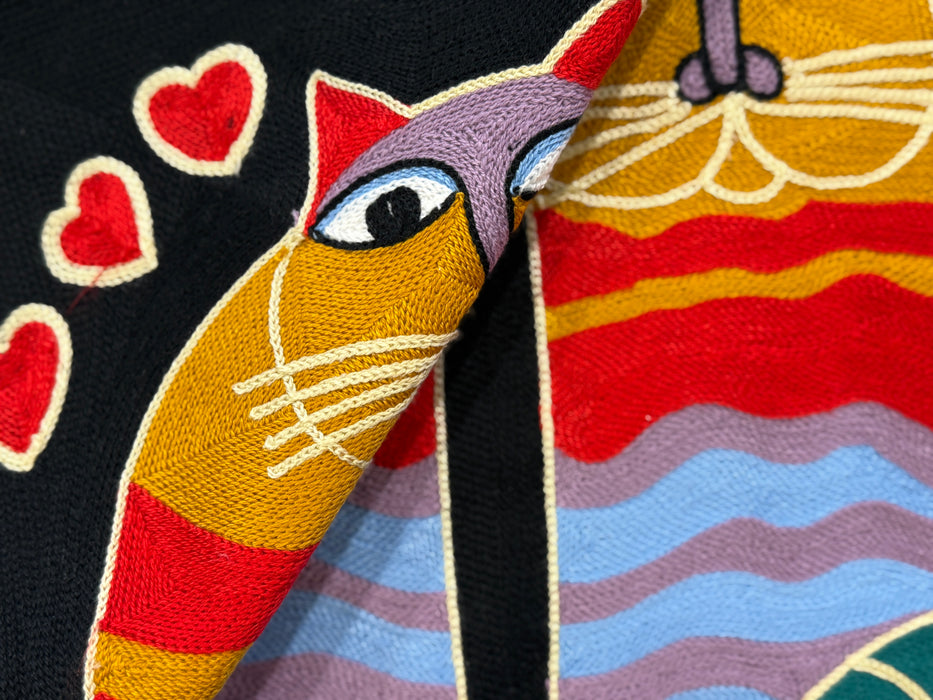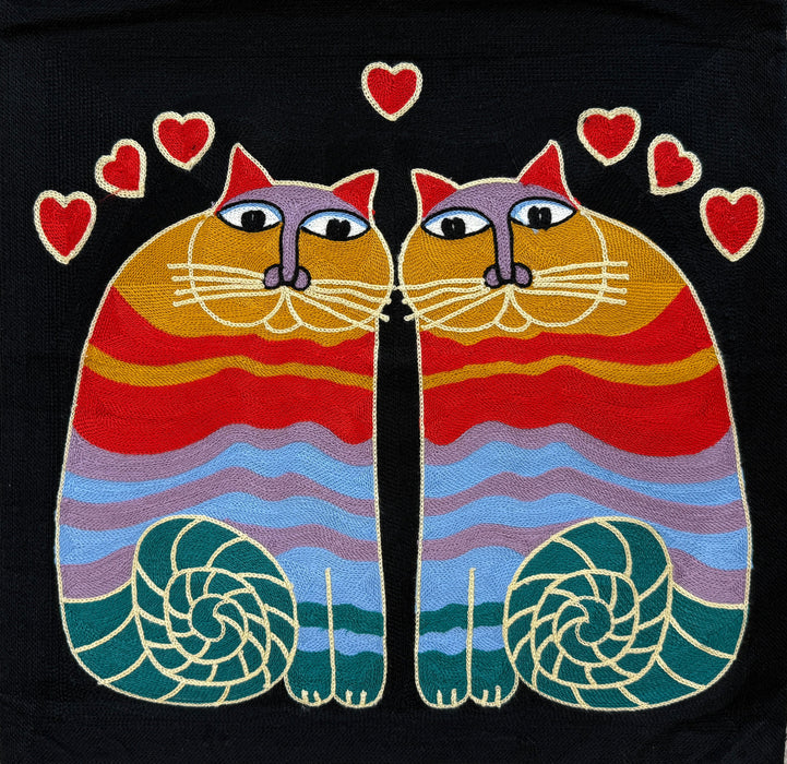 Hand Embroidered Picasso Style "Purrfect Pair" Cushion Cover