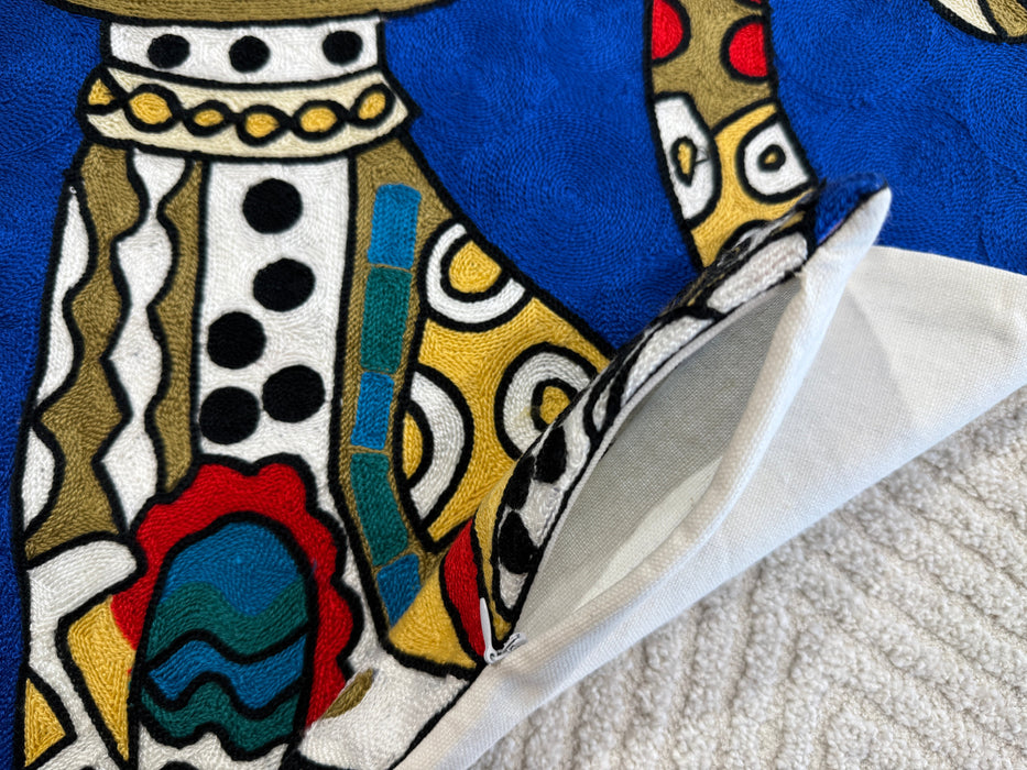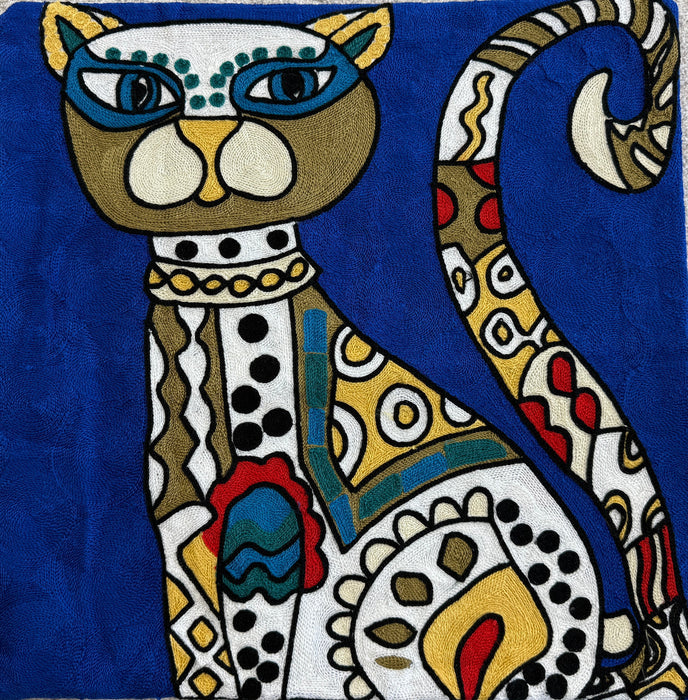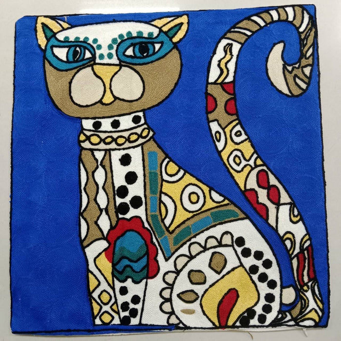 Hand Embroidered Picasso Style "Royal Whiskers" Cushion Cover