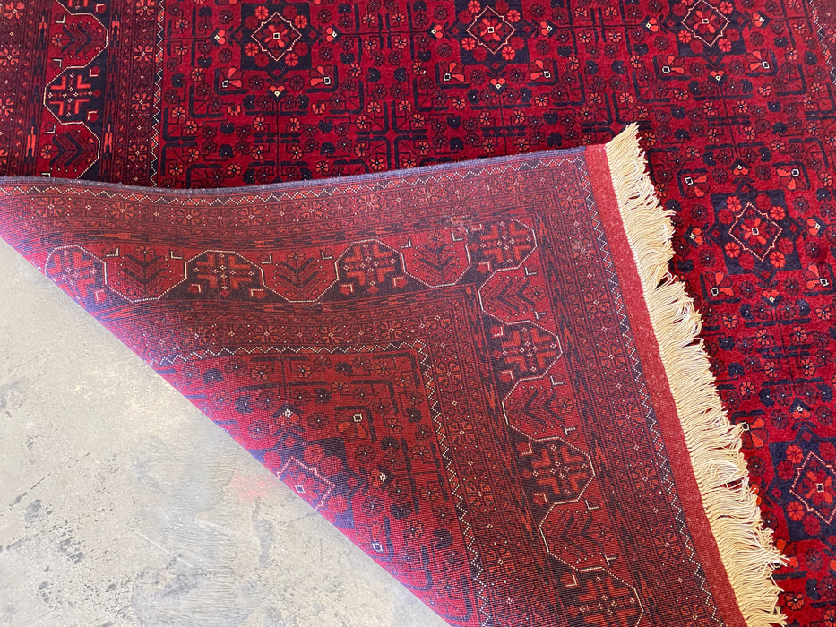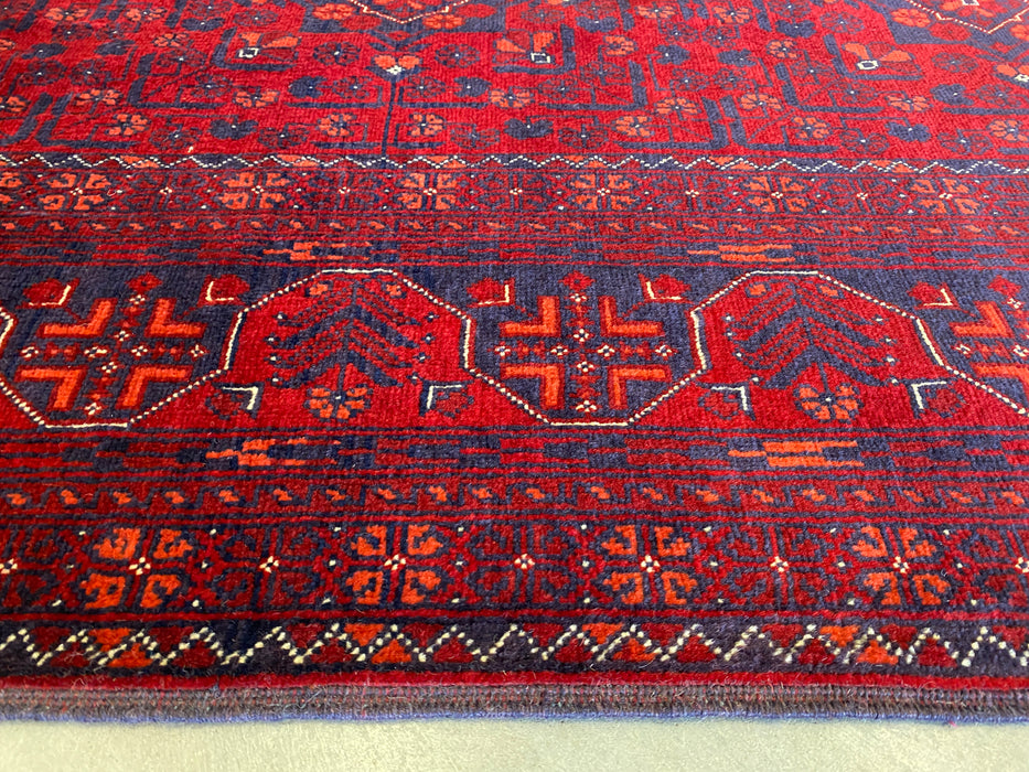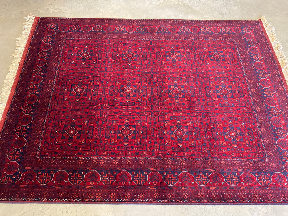 This Authentic Oriental Afghan Belgique rug is Hand Knotted of 100% Hand Spun Lamb's Wool.