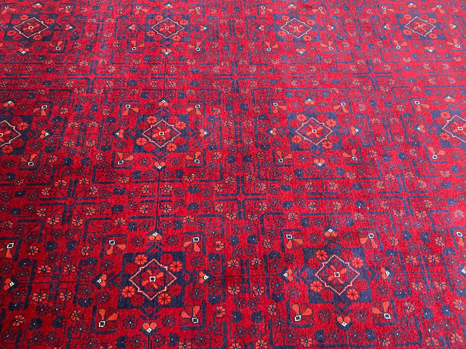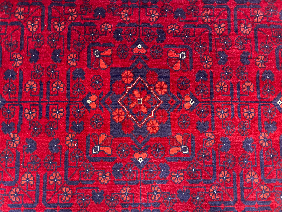 If you already own Afghan rugs you will be familiar with the traditional red and black format of the Nazhat and Khan Mohammadi style of carpet. They are robust rugs at a reasonable cost. Great value. The Belgique Rugs takes these traditional designs and reproduces them in the finest quality possible. The technical difficulties of weaving a rug of this quality using a woollen warp and weft are unbelievable. It's unlikely that you will have ever seen a Belgique rug for they are rare things. There is no mistaking them. The design is intricate and pin-sharp. The wool lustrous and the colour glowing.