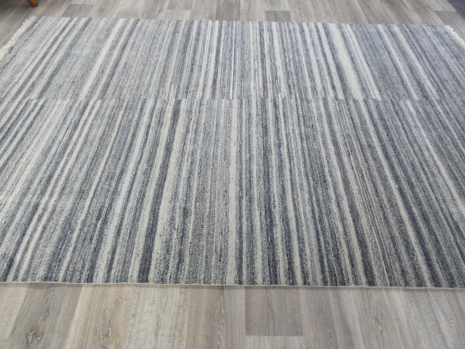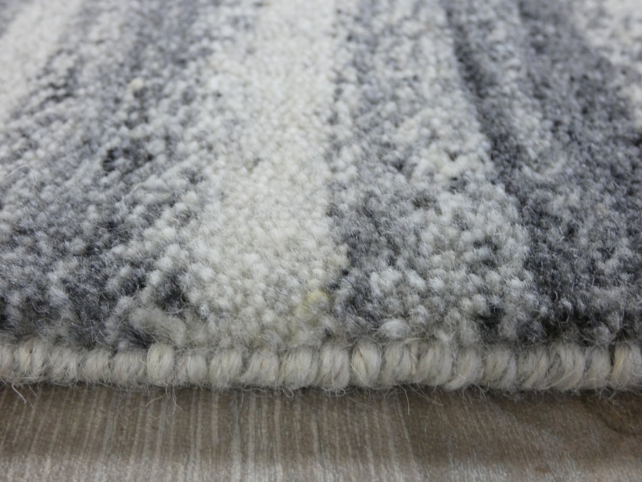 Hand-woven by expert artisans from India, made of NZ Wool, our ultramodern rug has lush softness and a rich, striated texture.  This design is inspired by the natural variations within fibres, textures and weaves; each one of our handcrafted rugs is slightly unique.