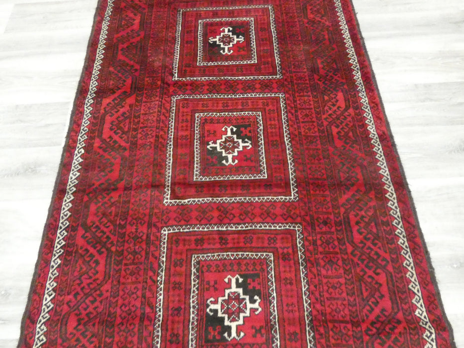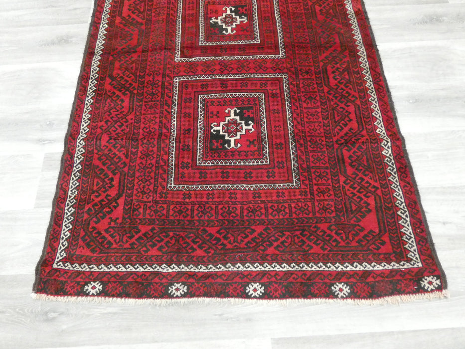 Baluch: the name was given to the group of villagers who inhabit Baluchistan - an area in western Iran, Afghanistan, and Pakistan. Most rugs are small, double-wefted, asymmetrical, and tribal in character.