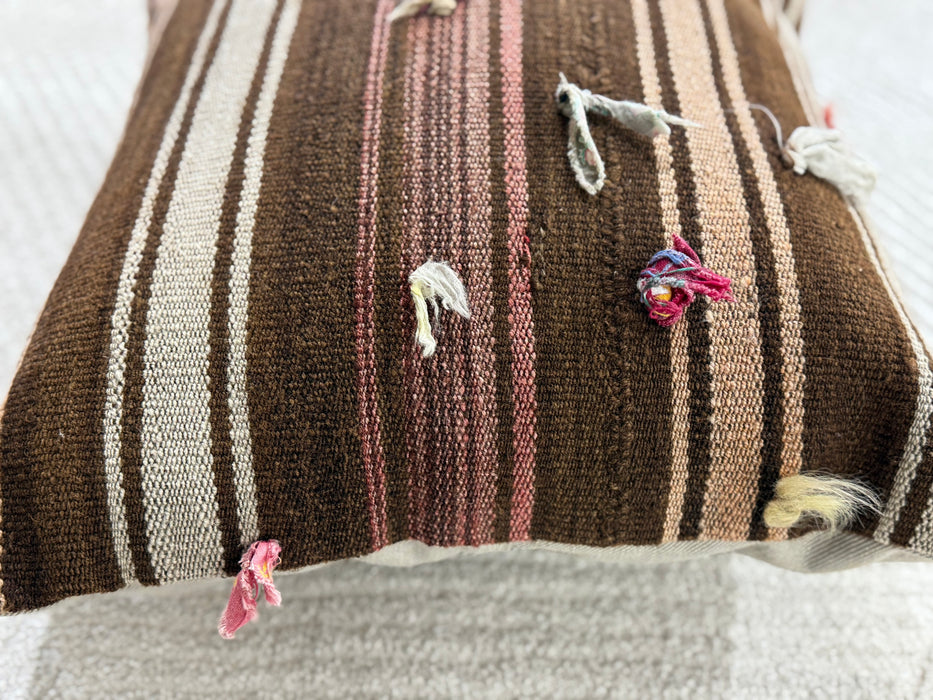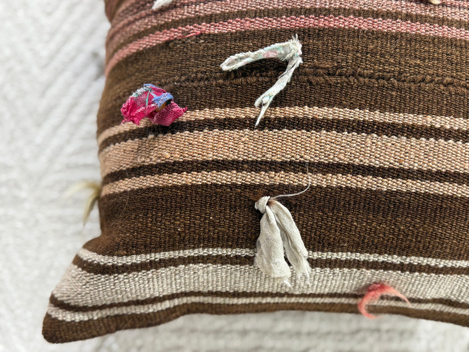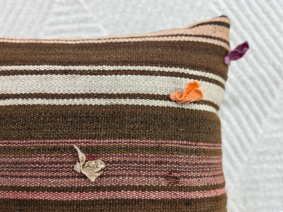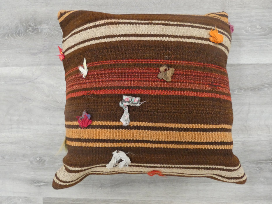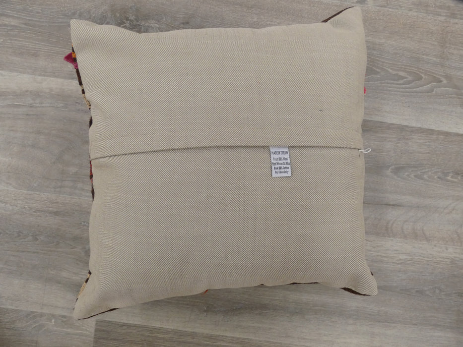This beautiful Cushion was made from an authentic, vintage Turkish Kilim rug. Bright colours of wool adorn the front of the pillow and the cotton back has a hidden zipper enclosure. Makes a gorgeous addition to any couch, chair or bed.