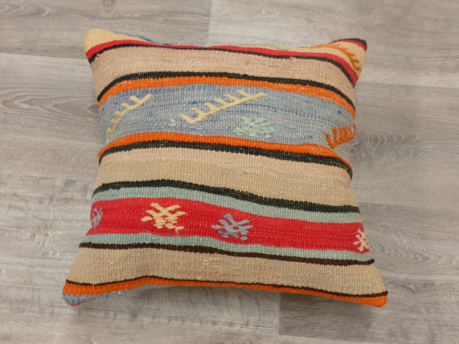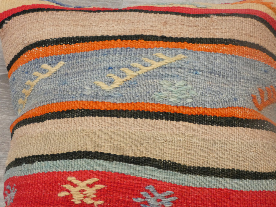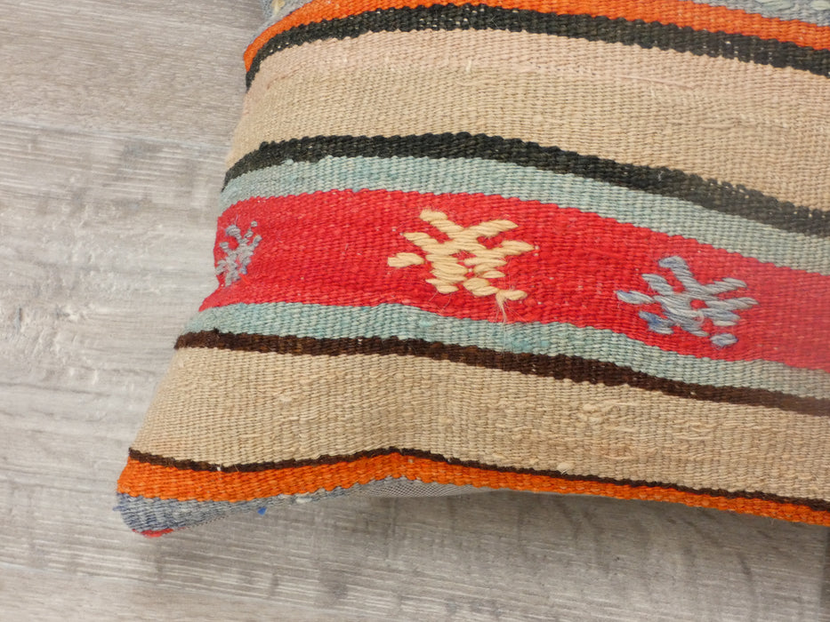 This beautiful Cushion was made from an authentic, vintage Turkish rug. Bright colours of wool adorn the front of the pillow and the cotton back has a hidden zipper enclosure. Makes a gorgeous addition to any couch, chair, or bed.