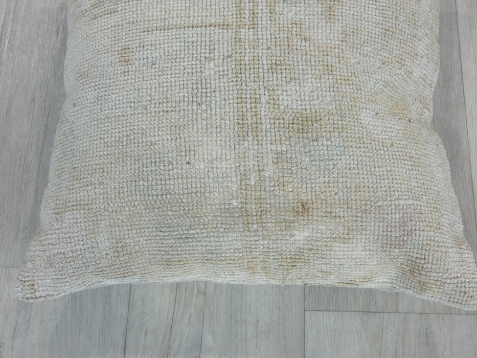 This beautiful cushion was made from an authentic, vintage Turkish rug. Bright colours of wool adorn the front of the pillow and the cotton back has a hidden zipper enclosure. Makes a gorgeous addition to any couch, chair or bed.