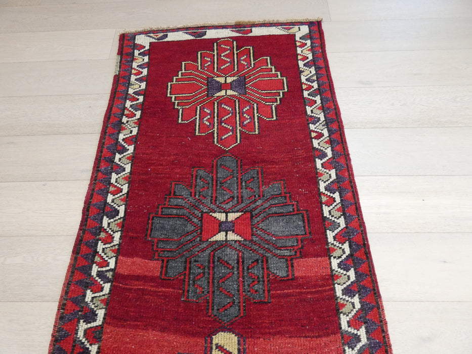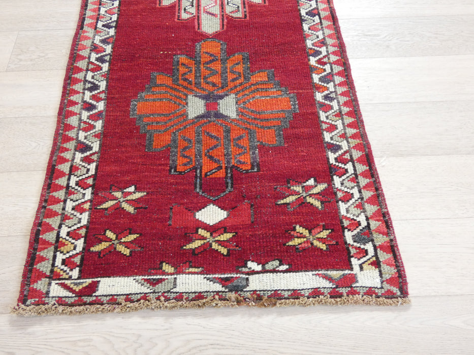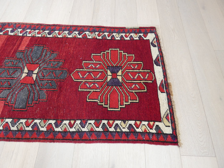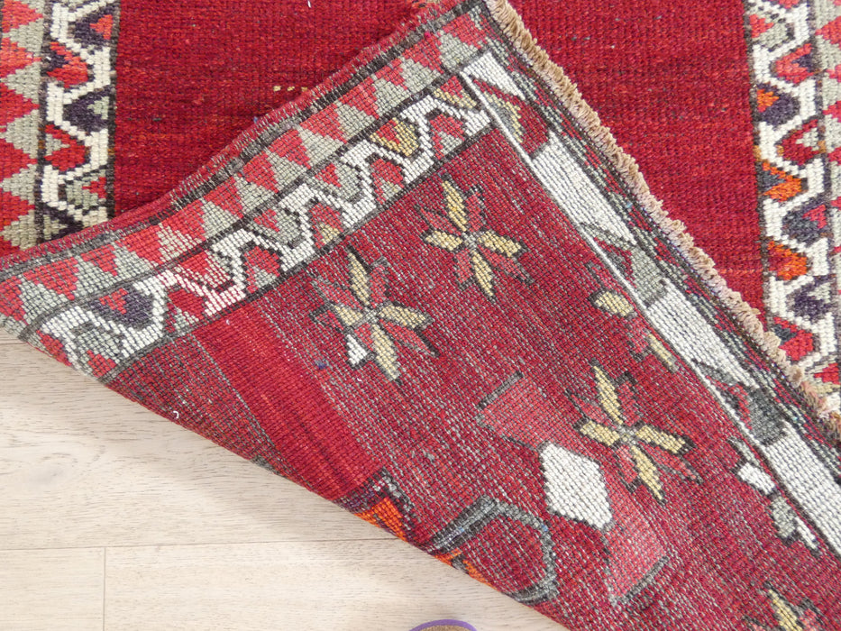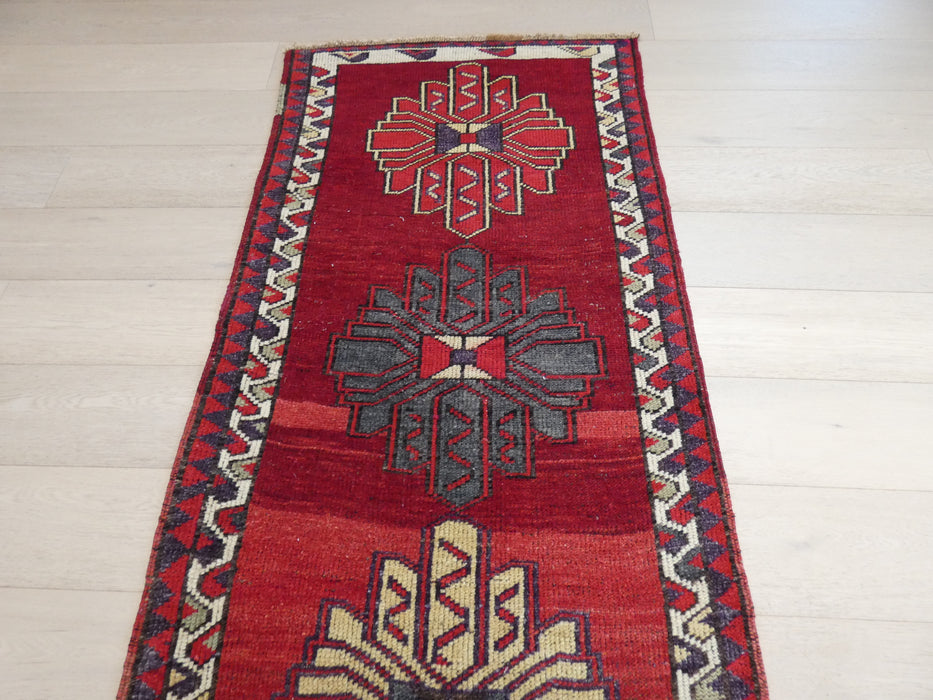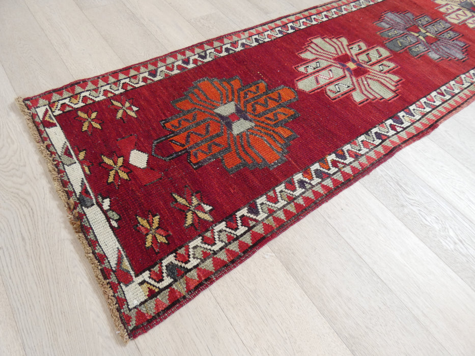 This hand-knotted Turkish runner rug is made with very fine quality hand-spun wool in excellent vintage condition.