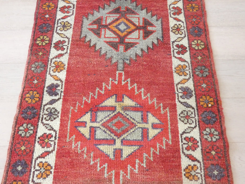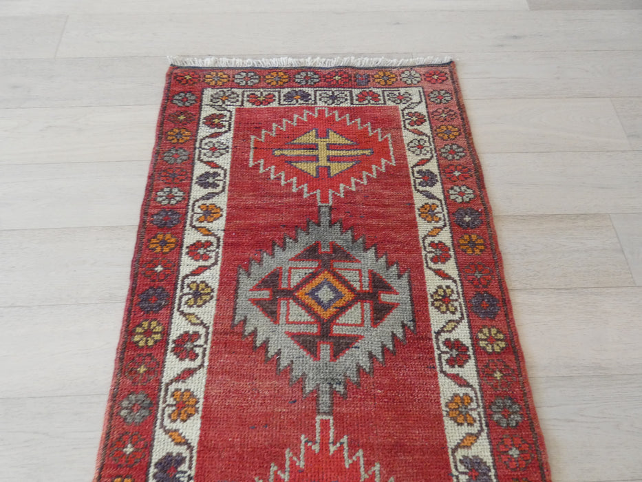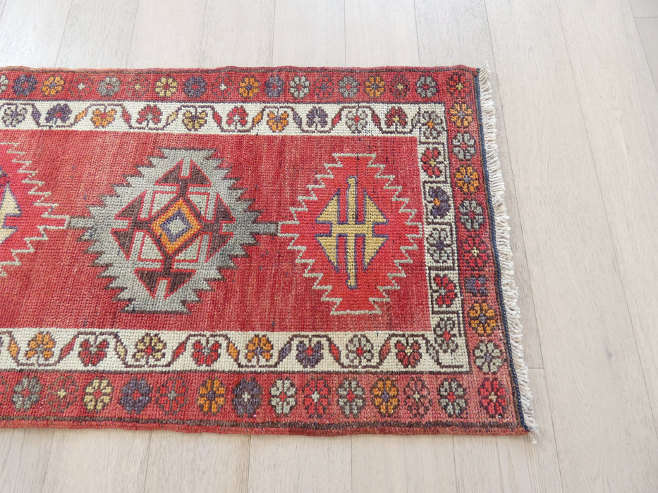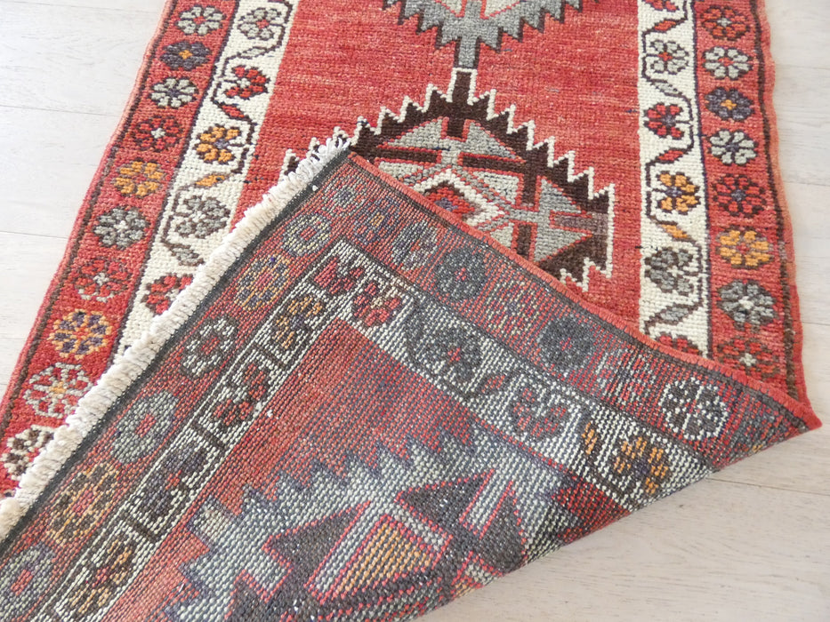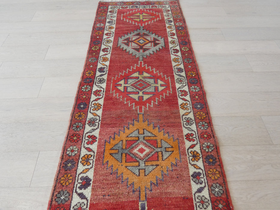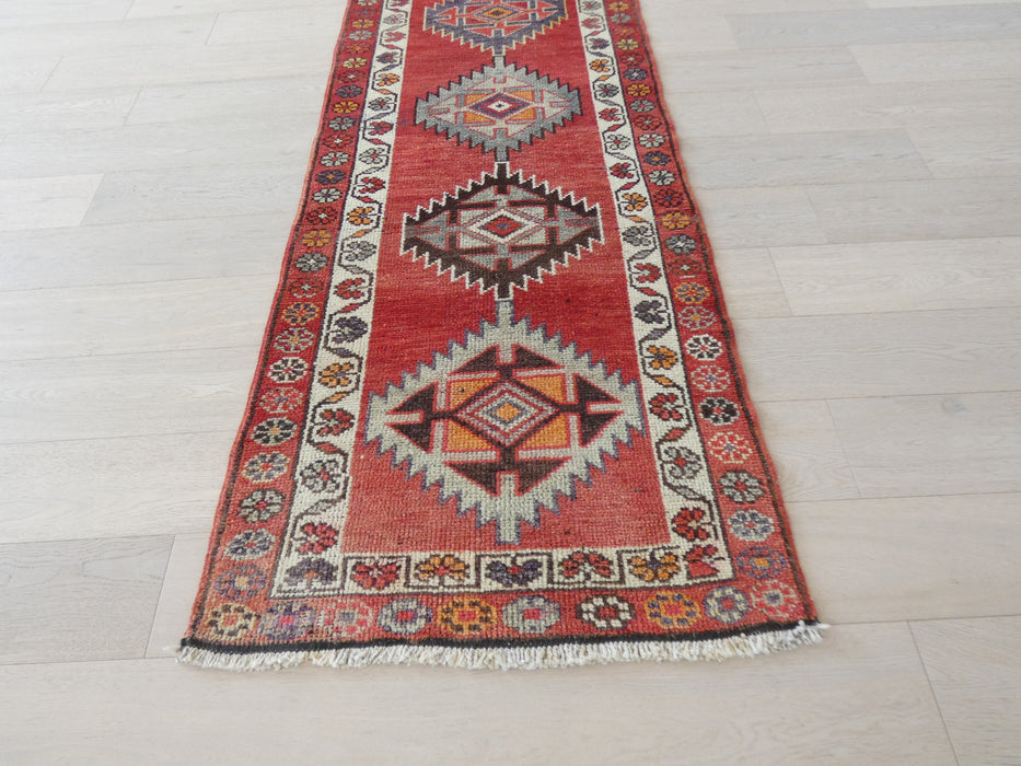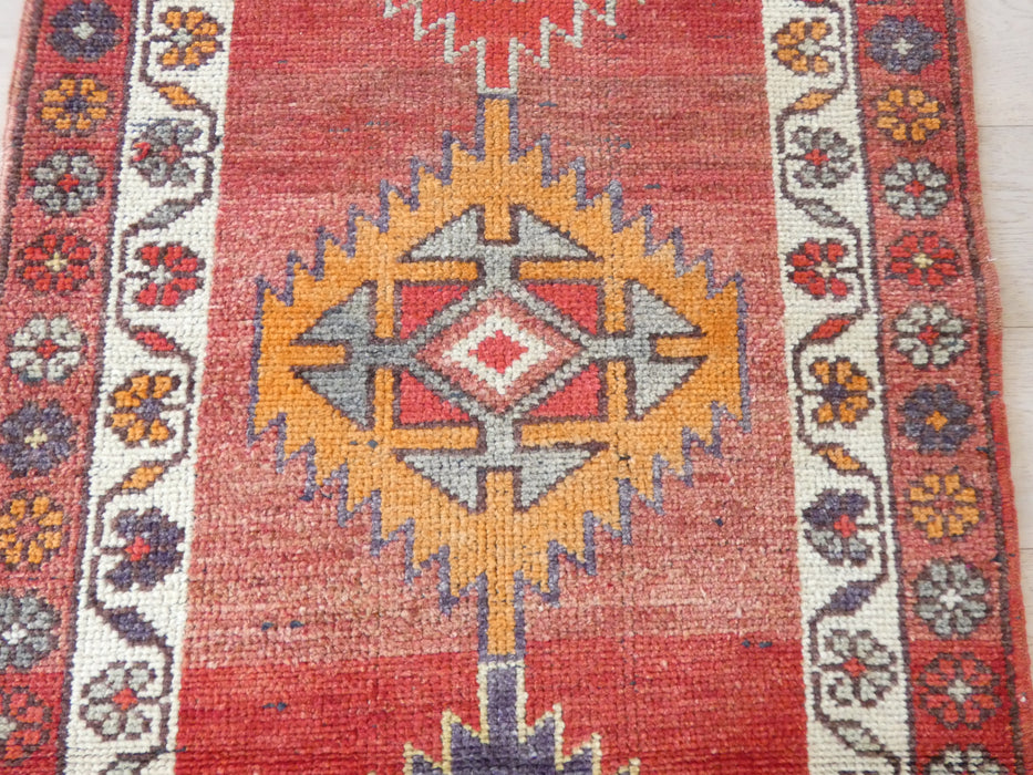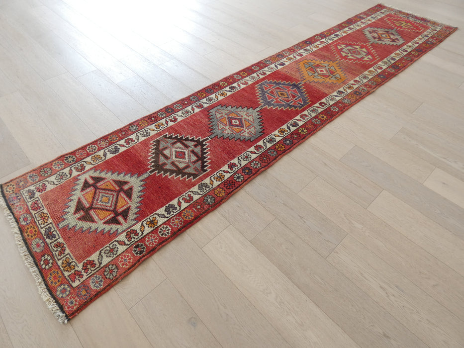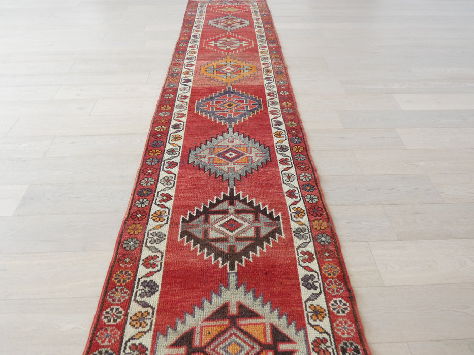 This hand-knotted Turkish runner rug is made with very fine quality hand-spun wool in excellent vintage condition.