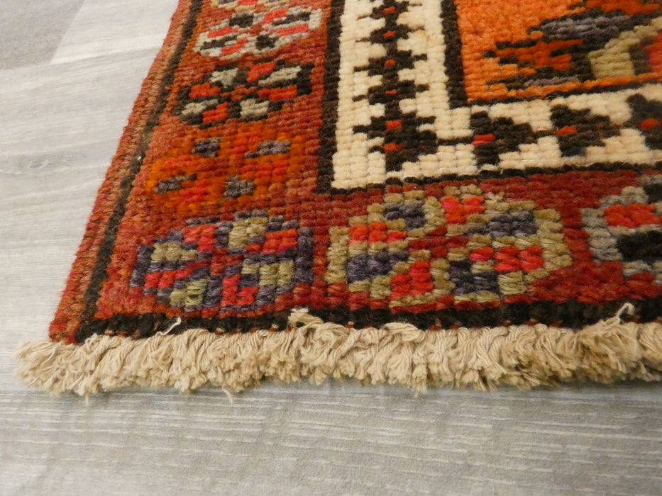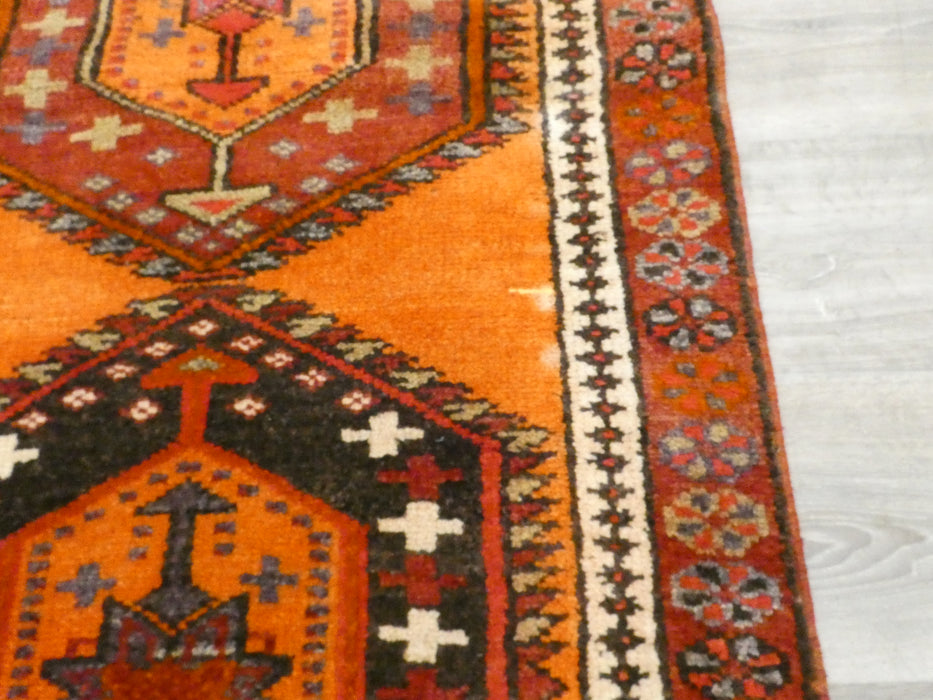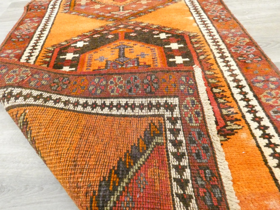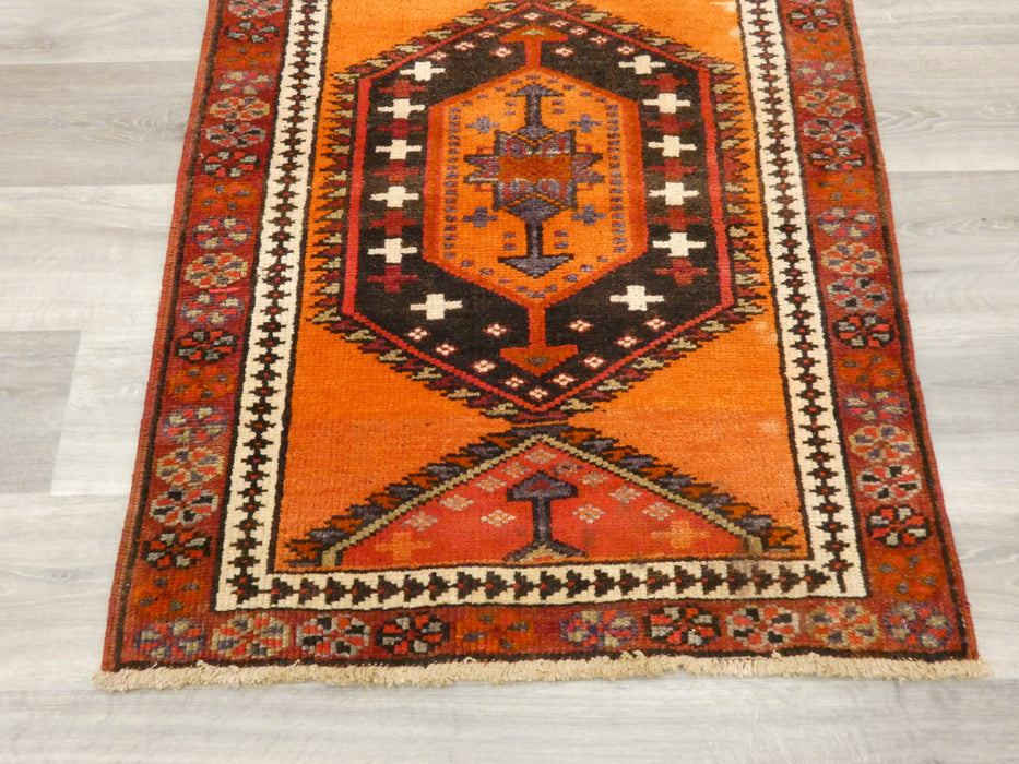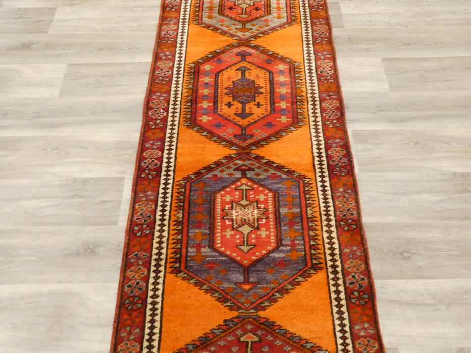 This hand-knotted Turkish runner rug is made with very fine quality hand-spun wool in excellent vintage condition.